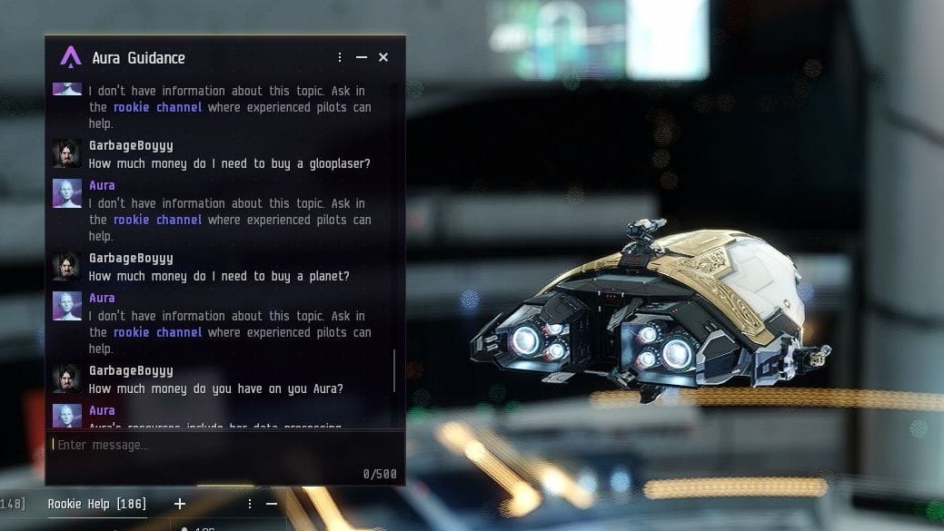 This is sadly when I must admit the stiff truth of Aura. The developers have stuck to their mission with an annoying amount of dull competence. They set out to make an AI chatbot that does not emulate emotion or conversation, but simply answers very very very basic questions. That means it's essentially blooping out a batch of answers based on keywords. No matter how fancy schmancy they try to make it seem, this is just sci-fi Clippy. It is far from being Gemini or Copilot. Any time I ask Aura an unexpected, non-keyword question, I get the same canned response: go ask the human beings about this in the game's rookie channel.