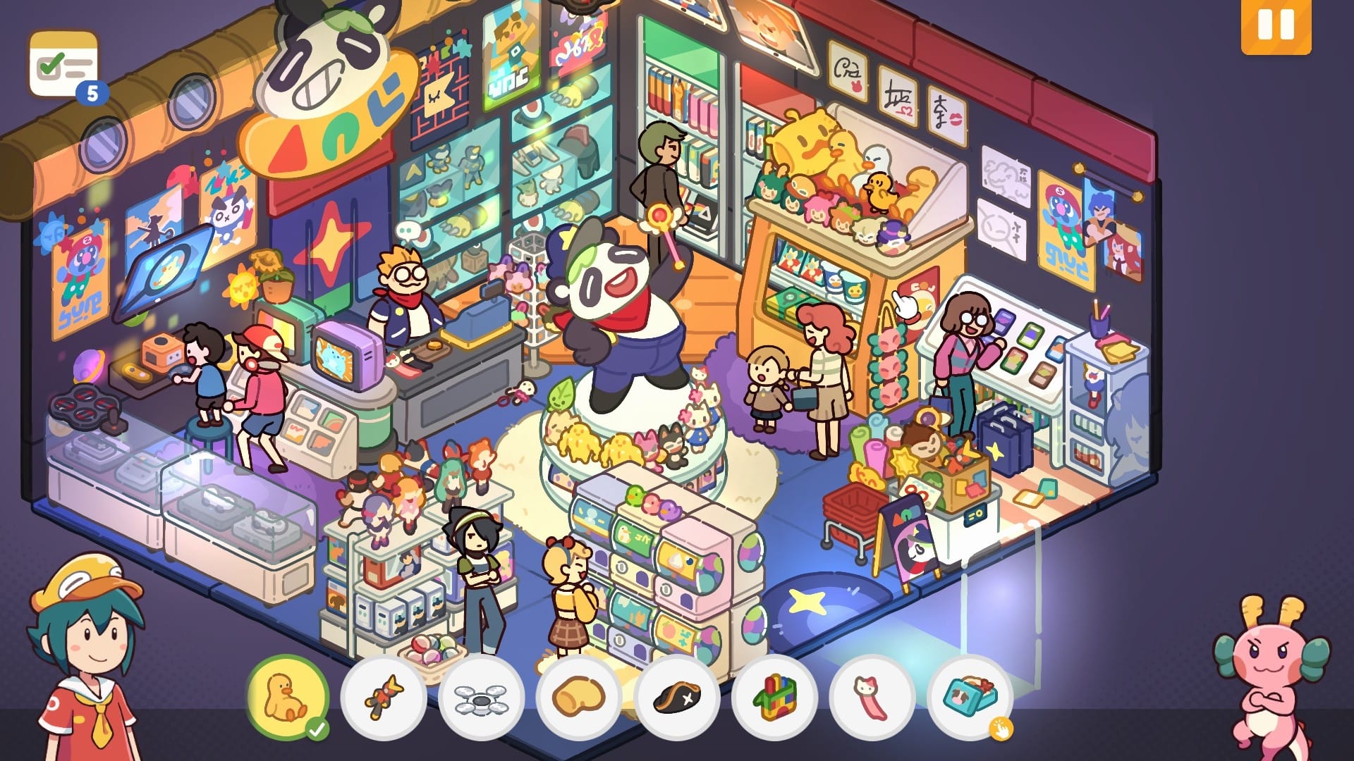 The game's objective is that you find a given list of items in each location to bring notoriety back to a shrine goddess and win a popularity contest against an evil corporate president. My objective, however, is to dissociate of an evening while watching YouTube videos on a second screen. So let's appraise Lost And Found Co. in how it enables my goals.