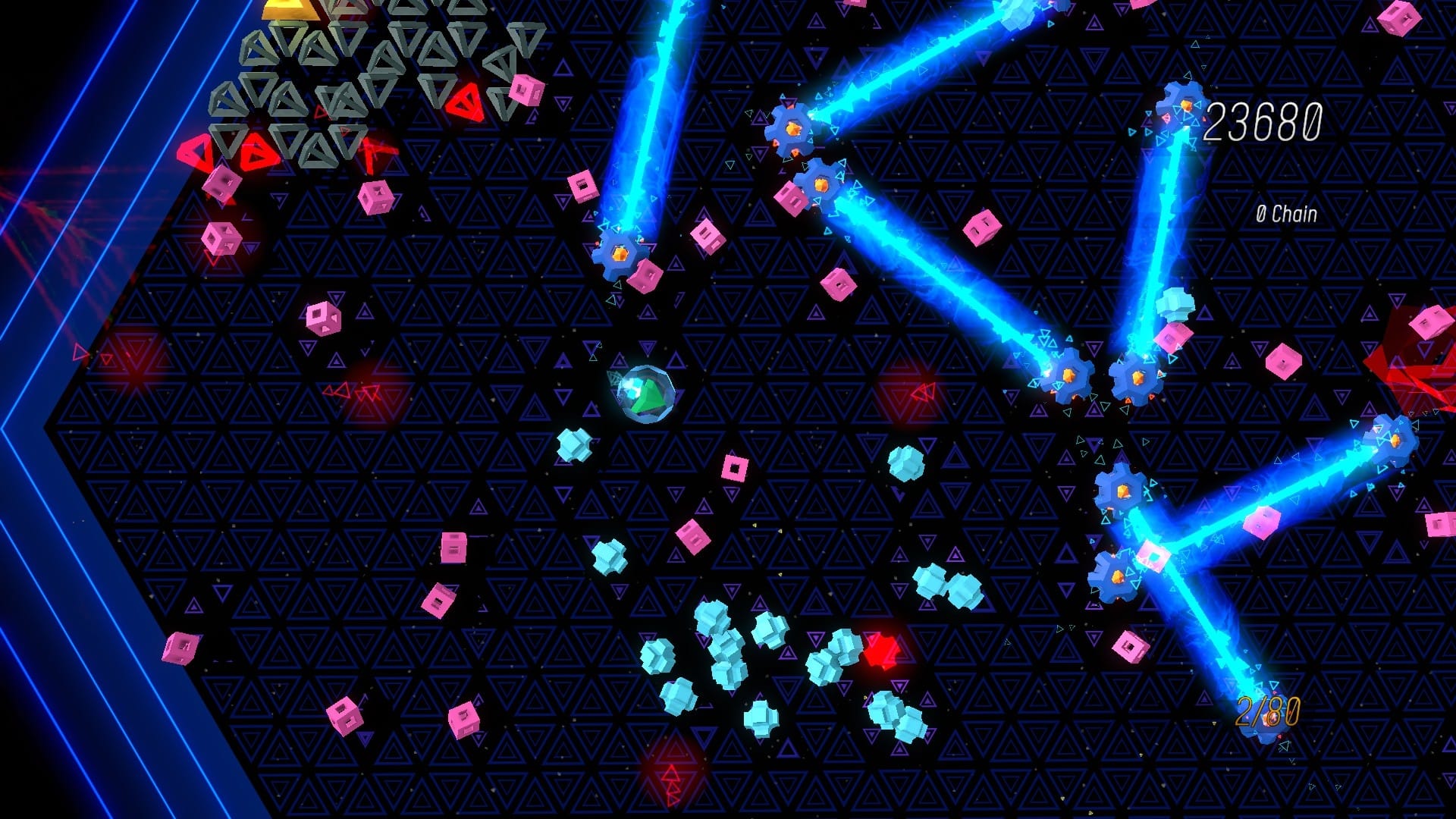 It is, instead, pure videogame. Sektori is an arcade shmup in the (neon) vein of Robotron in which you are beset upon by (neon) shapes that kill you if they touch you. Death presents you with nothing more than a score and an invitation to try again.