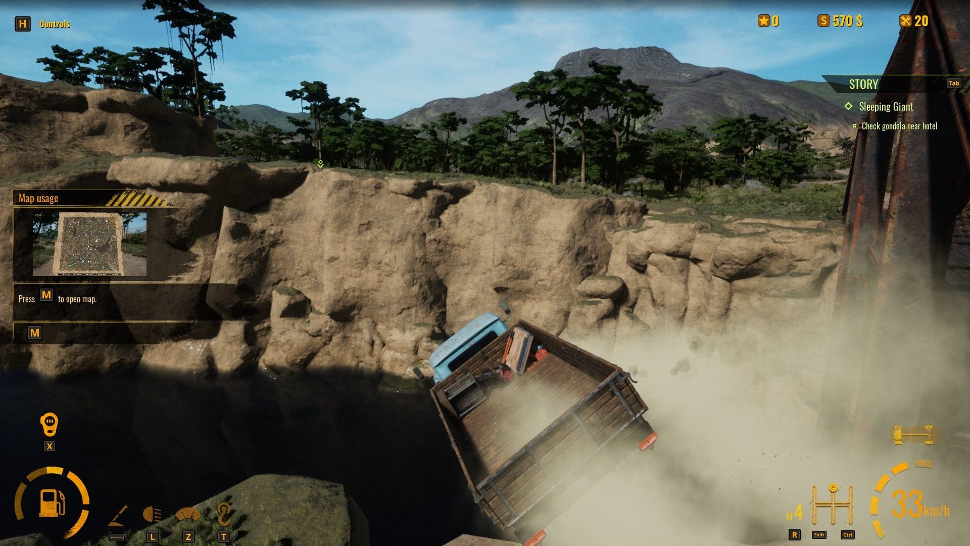 I like to test the boundaries of a world, and today I will do so by getting my truck into fifth gear and soaring off a bridge into a river. "Your truck has been destroyed," says a game over screen, bringing a sense of mild relief now that I cannot hear all the heinous gobshites on a walkie talkie who I have quickly grown to hate. I had such high hopes for my inaugural simulator in this much-hyped column, but here I am fully and apologetically sodden in the wet pits of a Latin American waterway. There are some car crashes that simply cannot be repaired. Truck Mechanic: Dangerous Paths is one of them.
