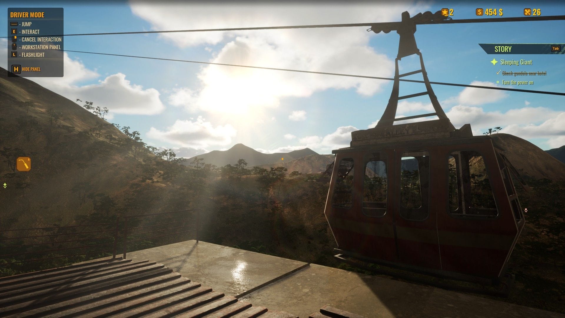 I finally reach the gondola I've been driving towards, but it's out of service because the control box needs a new wire. You see the running theme. If there is a worldview shared by the designers of Truck Mechanic and by successive US presidents, it is that everything in South America is broken and only you can fix it.